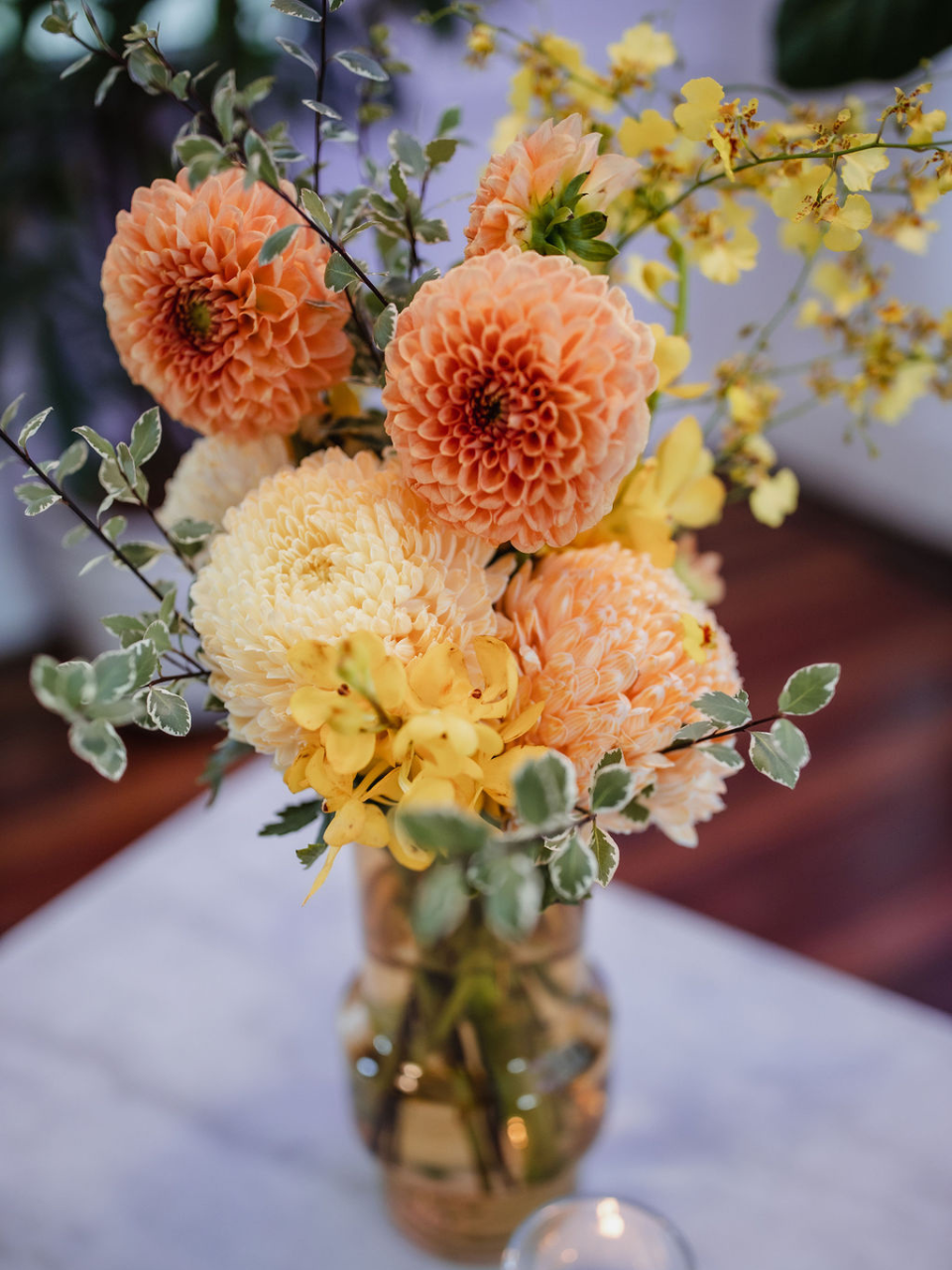 • Custom floral design in varying heights and soft ‘cloud’ arrangements