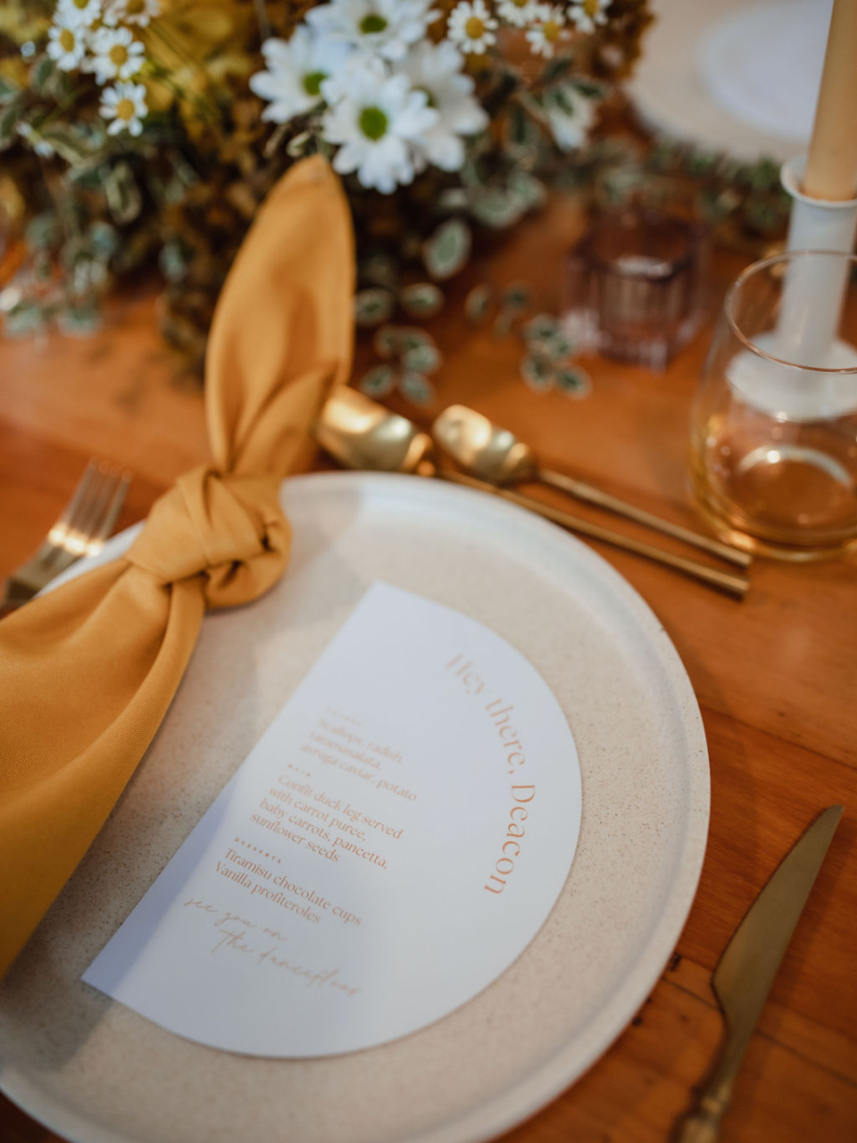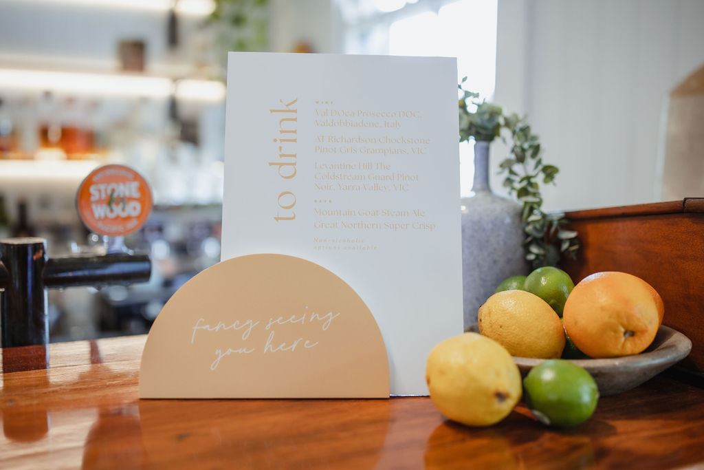 We incorporated custom half-moon menus at each setting, which were echoed in a matching drinks menu at the bar – subtle but thoughtful touches that highlighted the range of styling possibilities.