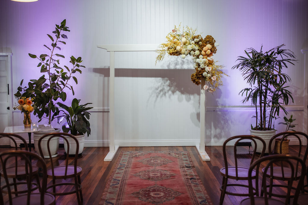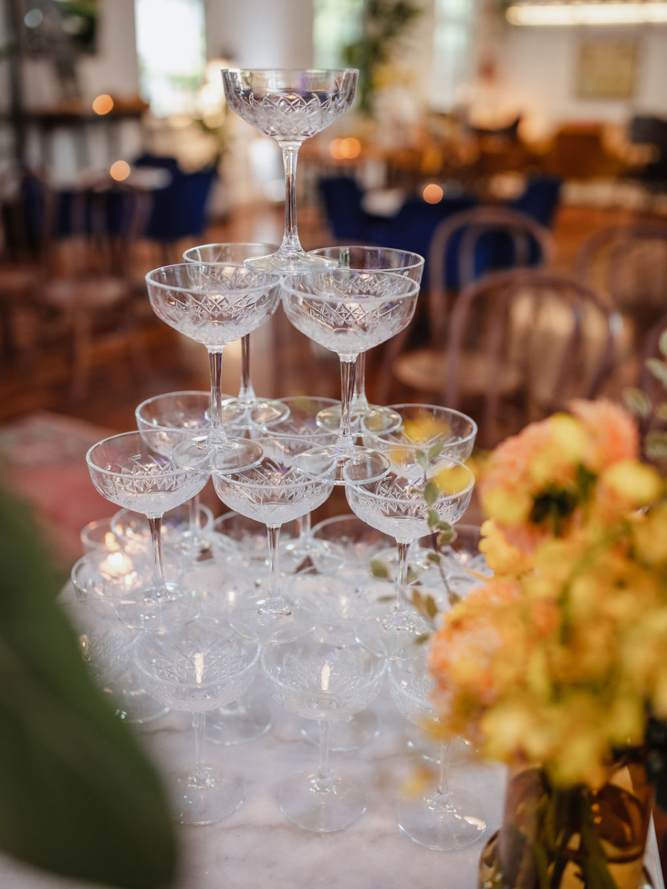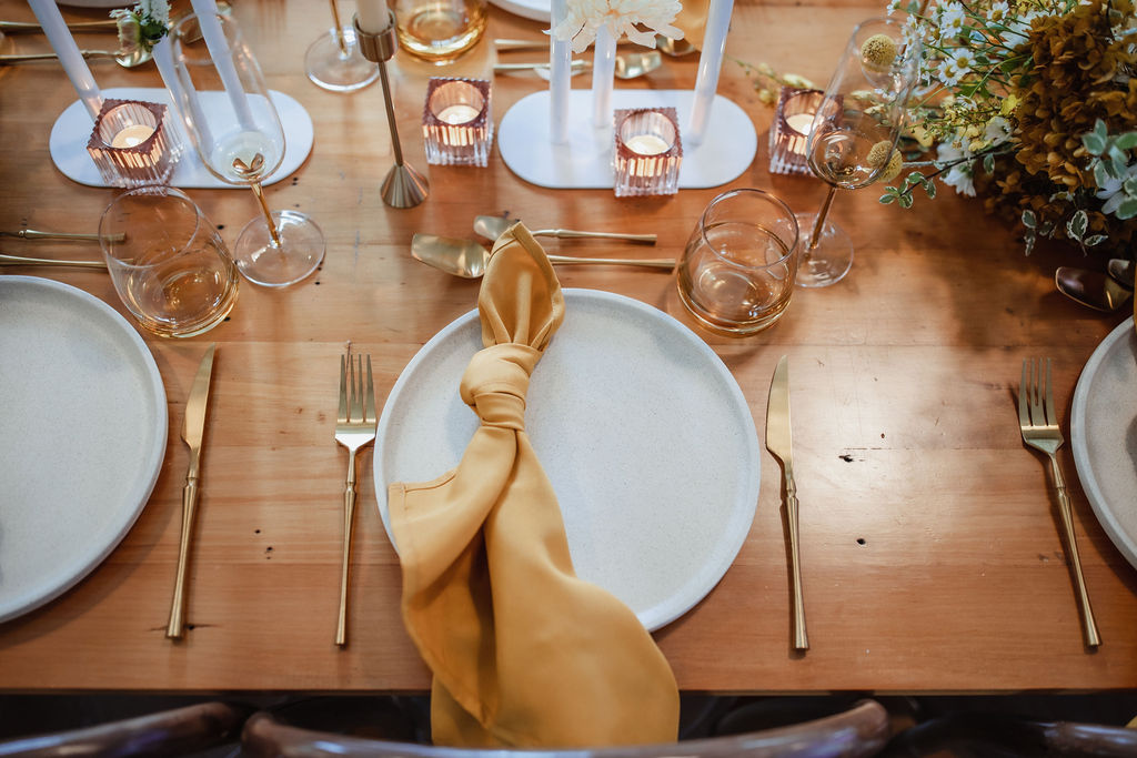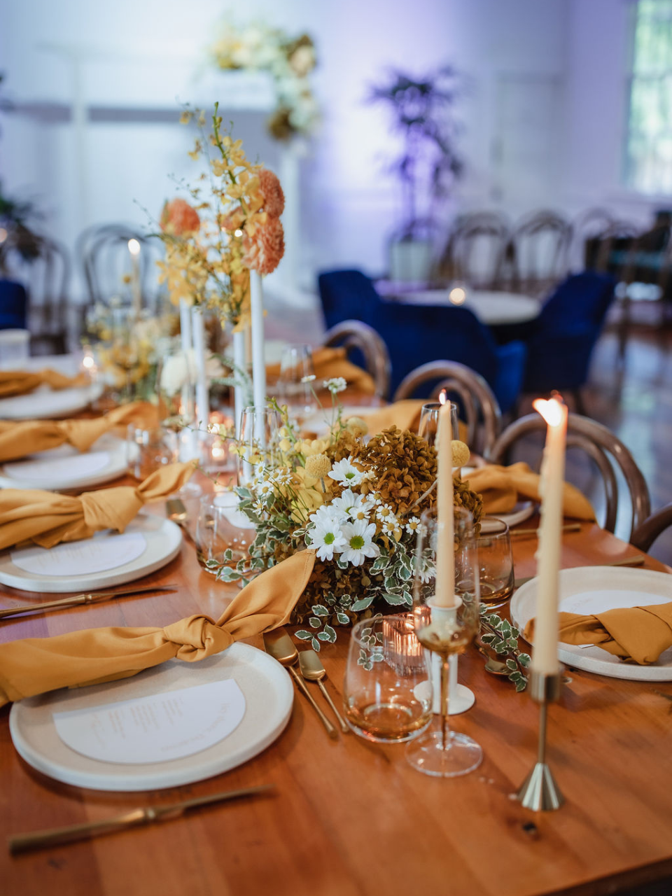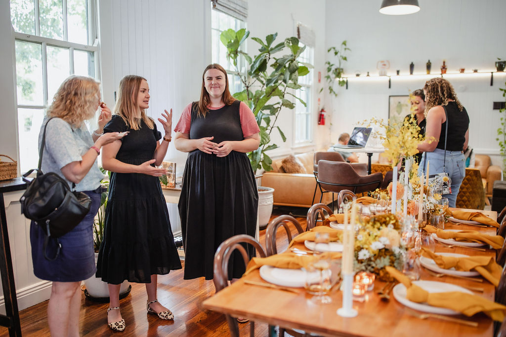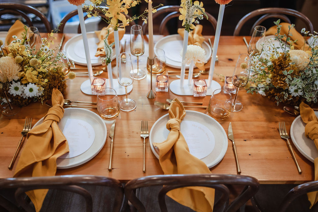 This morning meet-and-greet event featured soft live music from a soloist to set a calm and welcoming tone. We leaned into a brunch-style layout with a beautifully curated grazing board and full styling throughout the space. Our colour palette brought together cheerful yellows with contrasting blue furniture – pulling from the venue’s existing tan tones to create something fresh and different.